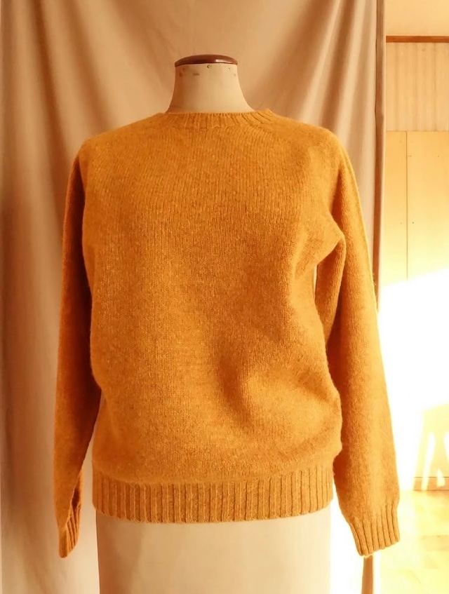 週間天気を見ると最低気温が連日マイナス20°に迫る勢い! ここ数シーズンが暖冬だった事もあり寒さが、「半端な俺の骨身にしみる」と、有名なあの曲の歌詞の様な毎日。ただでさえ遅い開店準備も滞るばかりとなっております… そんな折に、毎年ご提案しておりますハーレーオブスコットランドより、数あるモデルの中でも定番中の定番、基本の基と言っても過言ではないモデルが入荷しておりますのでご紹介いたします。 HARLEY OF SCOTLAND / SHETLAND CREW NECK SWEATER Color / GOLD DUST size 38 着丈60cm 身幅51cm 裄丈77cm 40 着丈61cm 身幅53cm 裄丈79cm 42 着丈64cm 身幅55m 裄丈83cm ※多少の誤差はご了承下さい。 WOOL 100% MADE IN SCOTLAND Harley of Scotland(ハーレー・オブ・スコットランド)は、1929年よりニットの聖地スコットランドで長年生産し続けられている老舗のニットメーカーです。 イギリスの北方スコットランドの北にあるシェトランド諸島の羊毛シェトランドウールでつくられており、ふんわりと柔らで、発色の良さが特徴。肩や袖部分にも継ぎ目がないシームレスのホールガーメント編みはストレスのない最高の着心地と共にこちらのモデルは驚くほどの軽さを兼ね備えています。 GOLD DUST = 金粉、砂金 と言った意味合いで、何だか縁起も良く感じられる絶妙な色合いで、明るめながら落ち着いた面持ちも感じます。