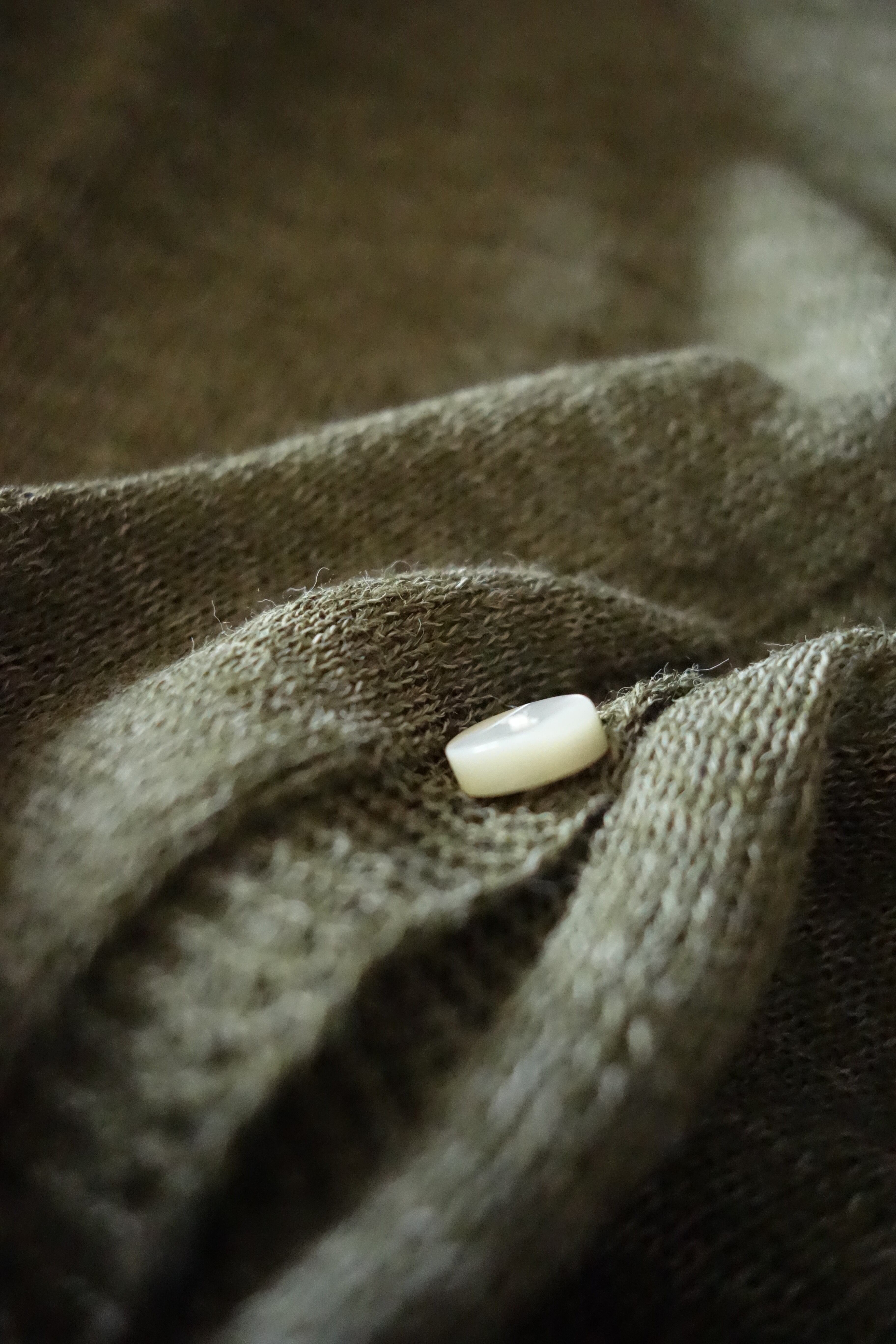 そんな生地の特徴に加え、肉厚の貝ボタンはしっかりと縫い付けれており、上品な印象は更に増すばかりです。