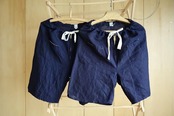 軽い軽い綿麻にインディゴ染め。サイドに縫い目の無い、シンプルな短パン。