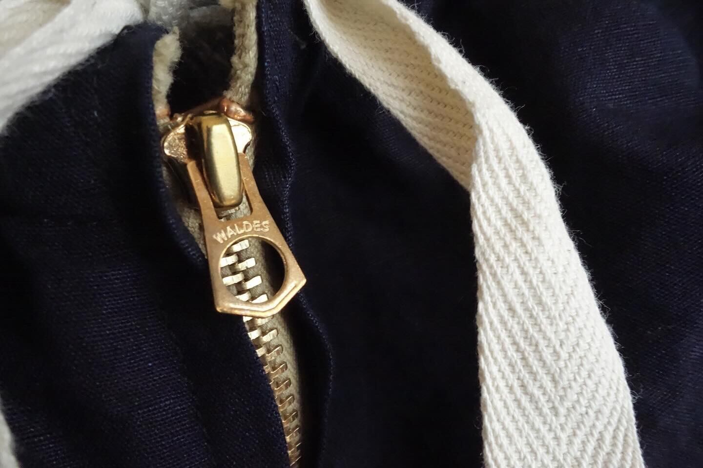 ネイビーで 綿麻。素材も軽く、縫製もシンプル。