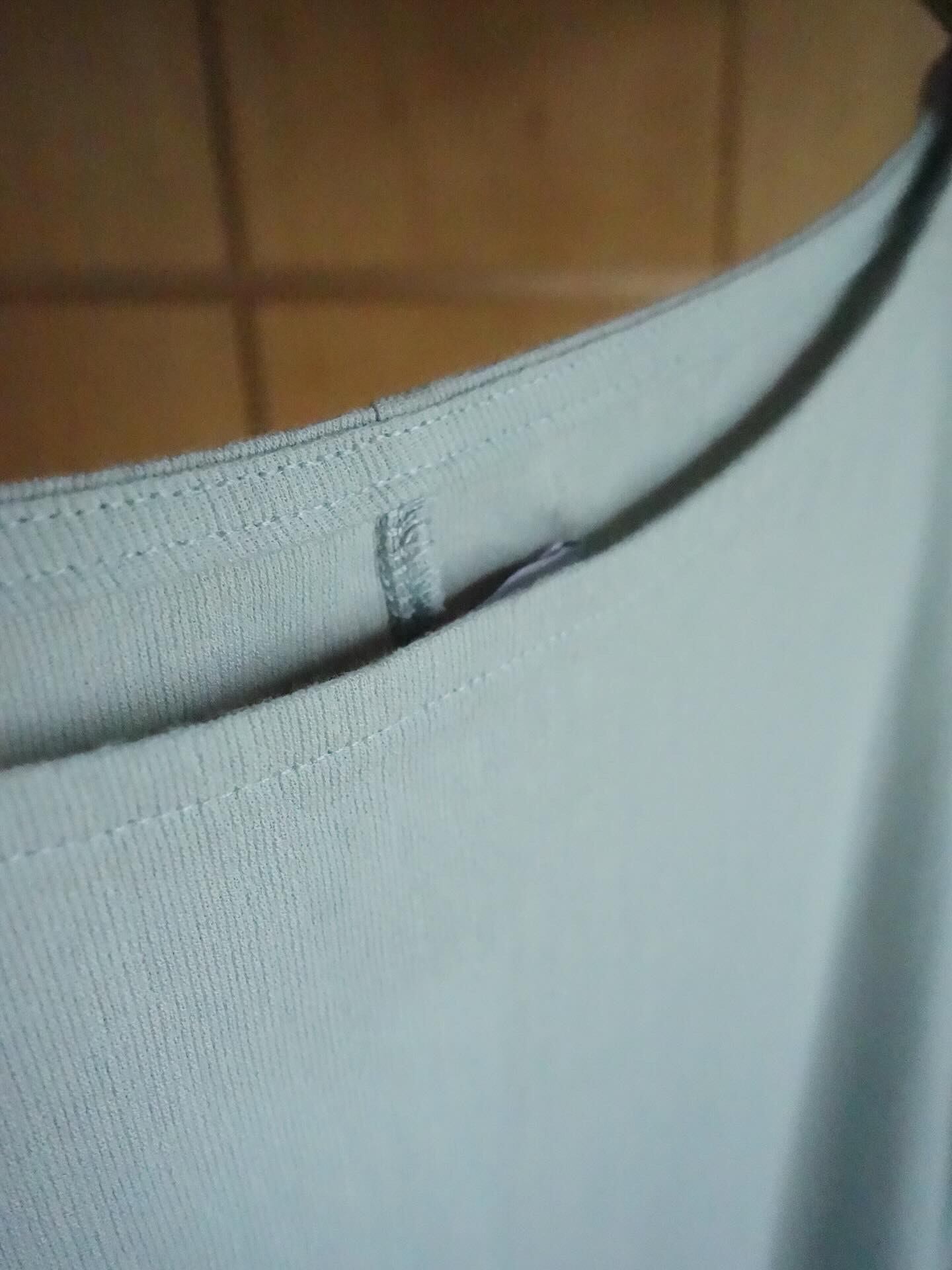 ボートネックにややドロップした袖が品の良い印象。ネックと袖口のパイピンングも良きアクセントとなっております。