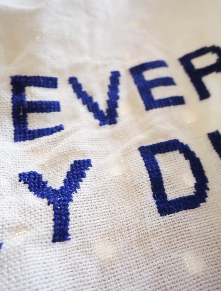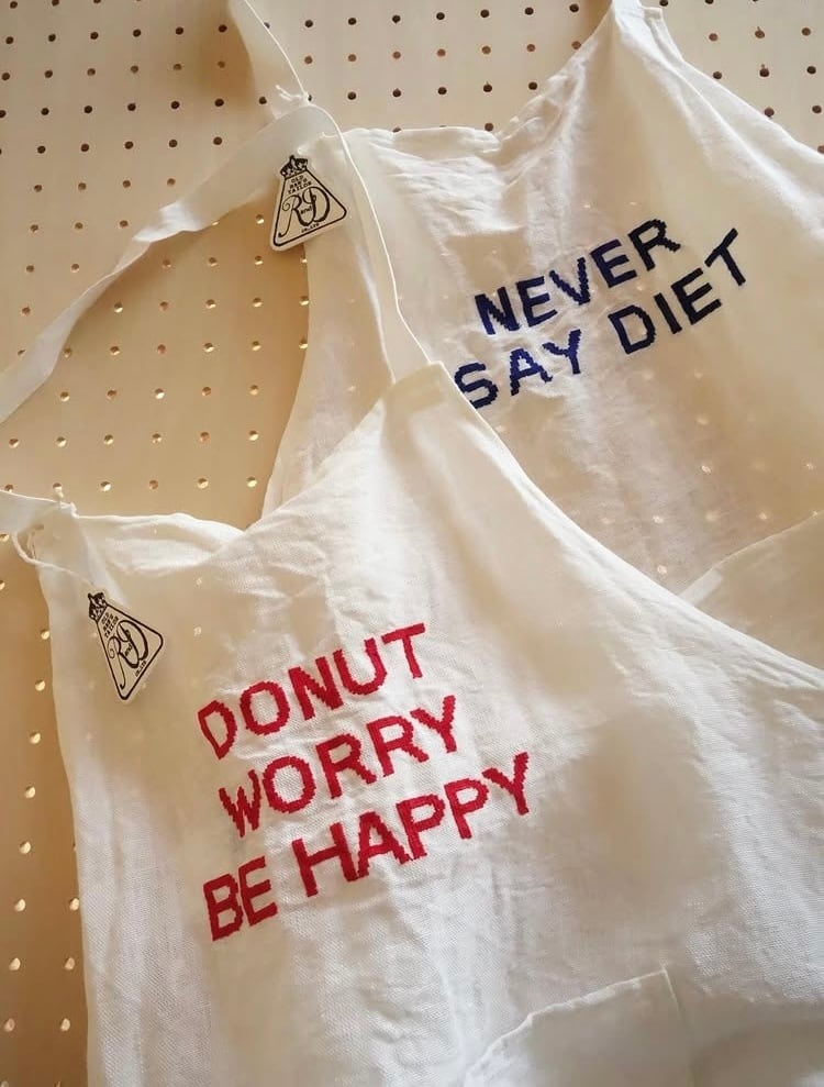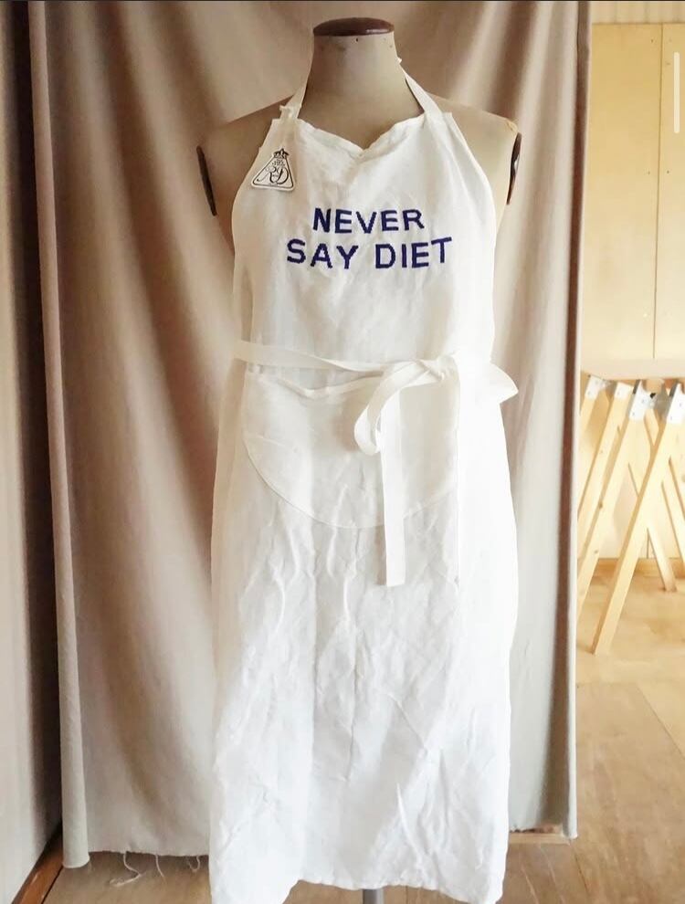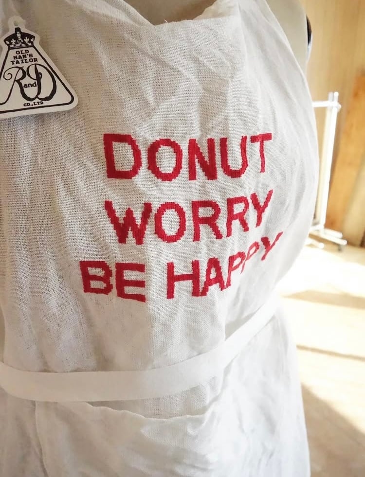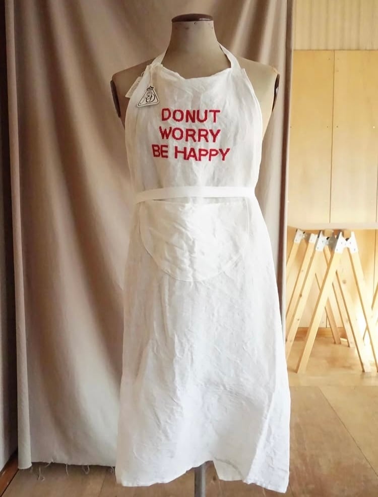そこで、同じメッセージが刺繍されているエプロンが入荷して参りましたのでご紹介いたします。