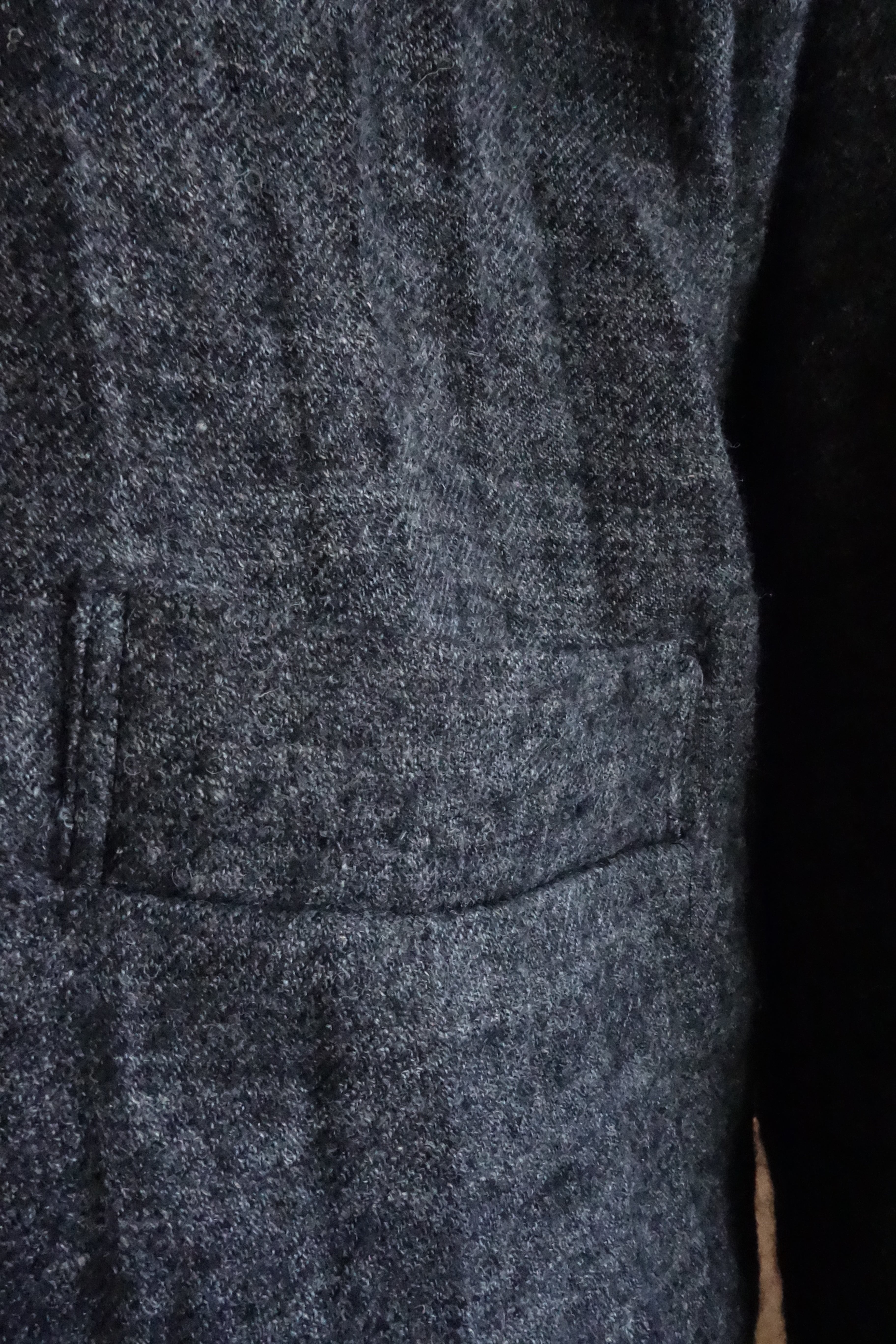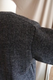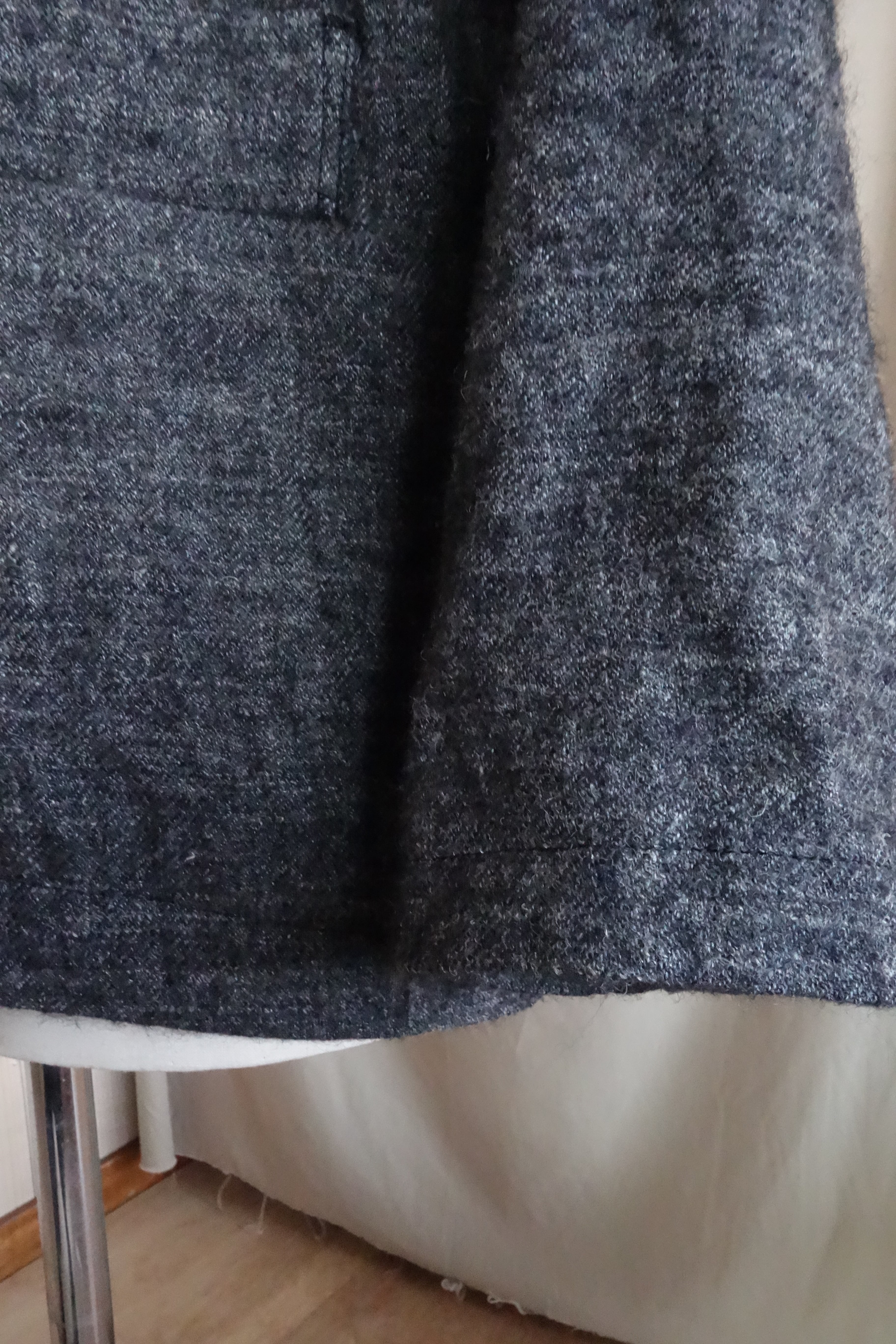 素材はリネン60% シェットランドウール40% チャコールグレーカラーの綾織りのざらっとした質感で洗濯も容易な素材です。