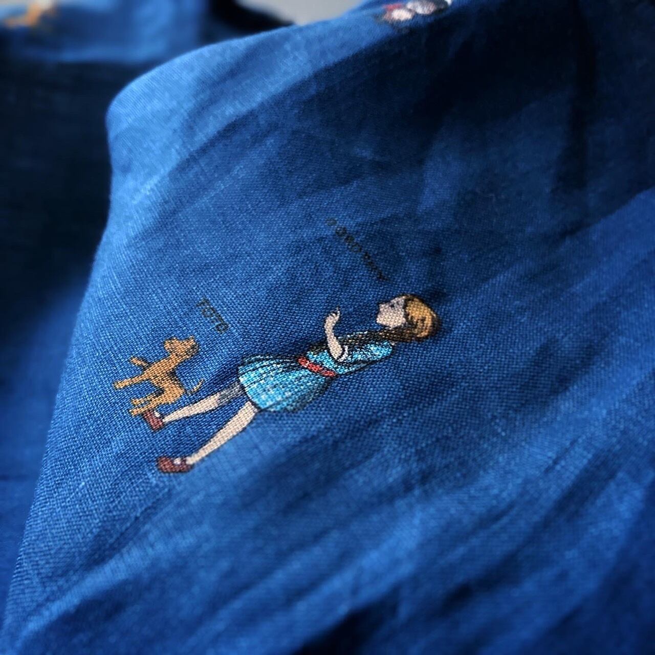 R&D.M.Co- OLDMAN’S TAILOR OZ PRINT LINEN KITCHEN CLOTH / NAVY