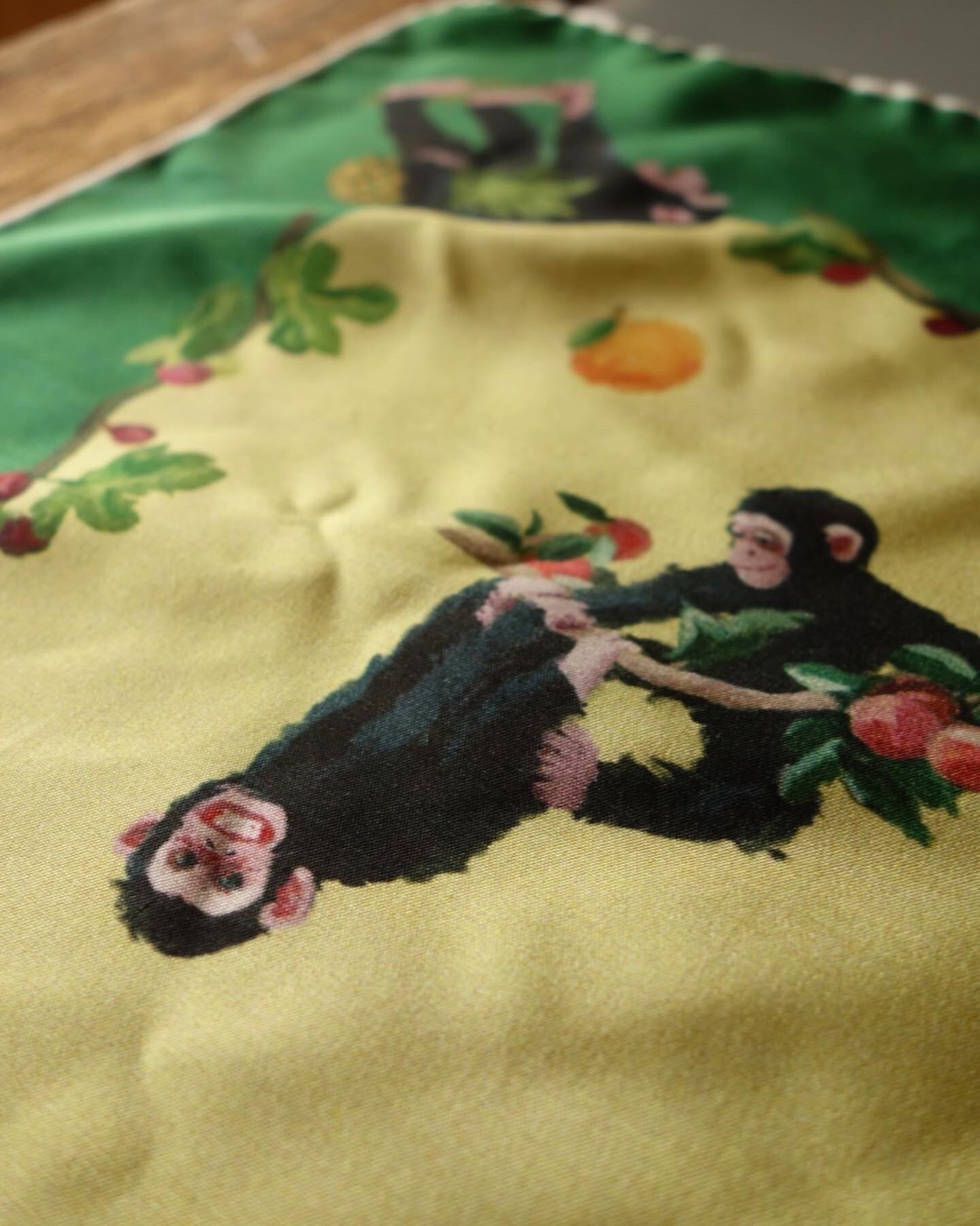 R&D.M.Co- OLDMAN’S TAILOR JUNGLE MONKEY PANEL SILK SCARF