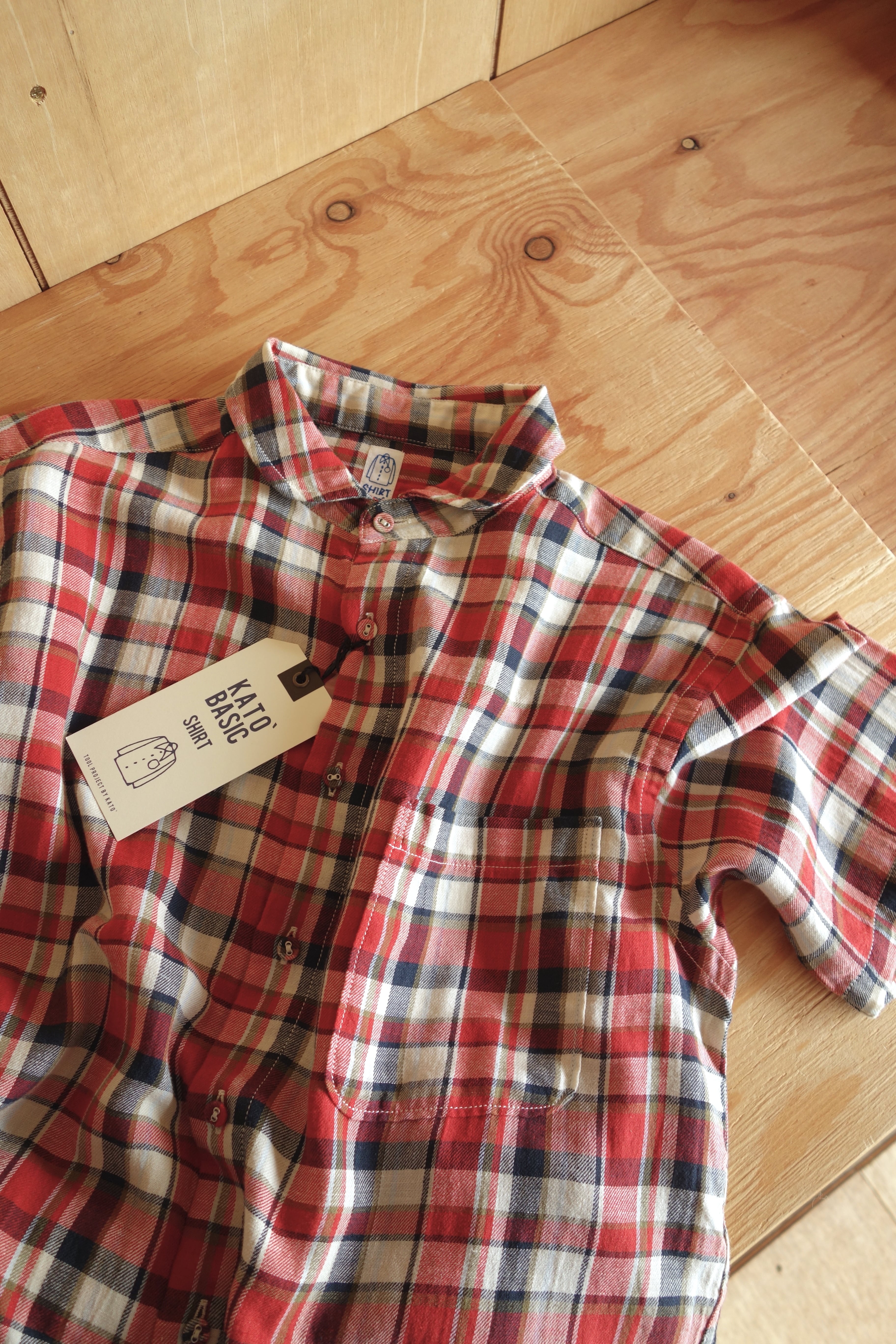KATO' BASIC コットンリネンラウンドカラー半袖シャツ size s