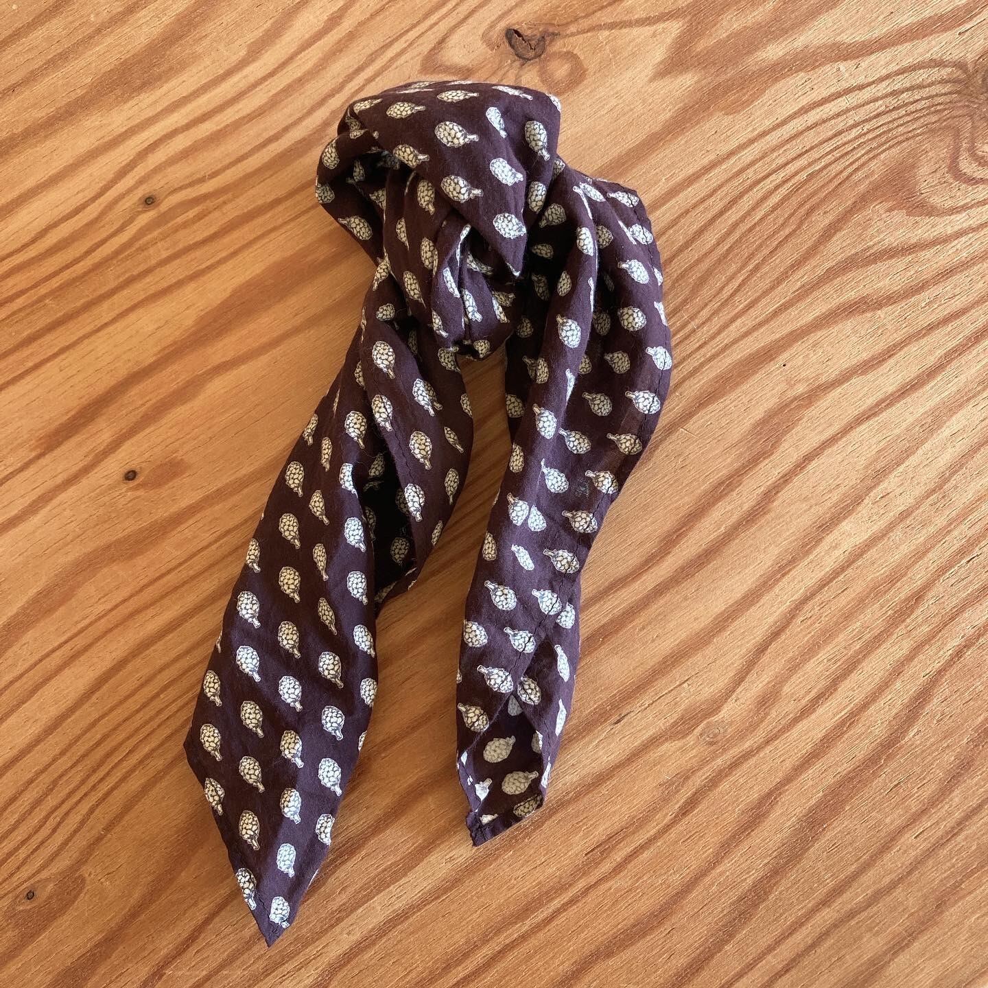 先日ご紹介致しましたストール同様に、コットン100%の柔らかいガーゼのような素材のバンダナです。ネッカチーフとしても印象がとても良いですが、自身はハンカチとして愛用する事としました。