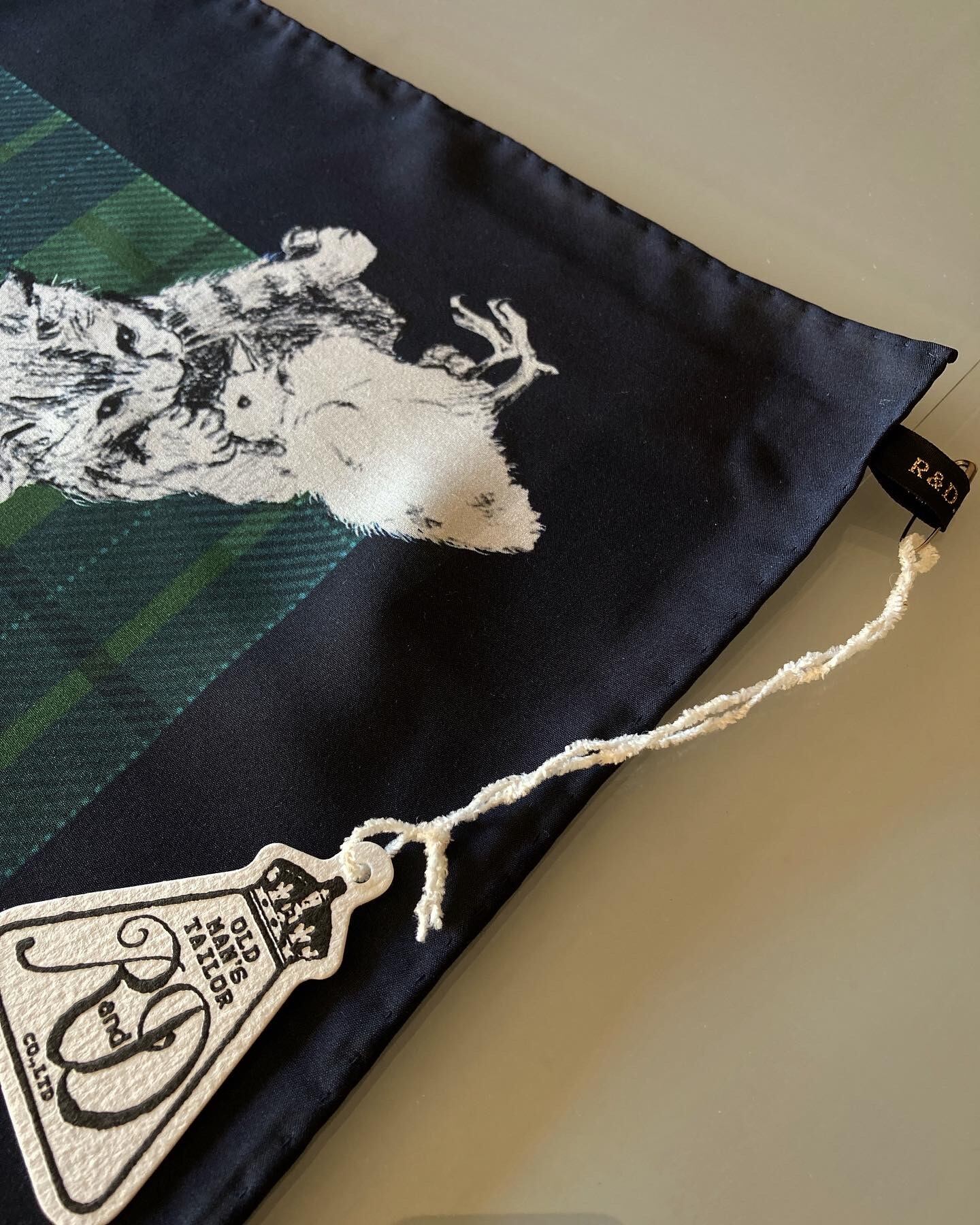 R&D.M.Co- OLDMAN’S TAILOR SKETCH BOOK PANEL SILK SCARF / CAT GREEN
