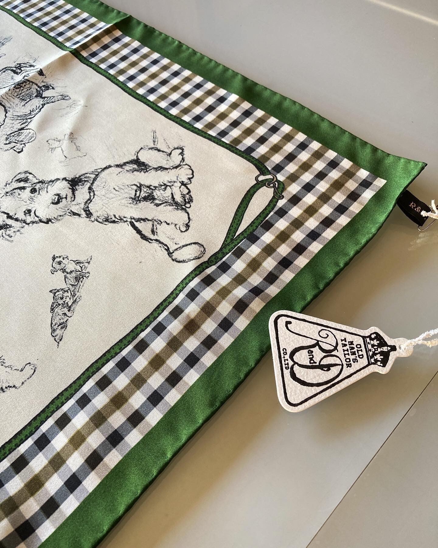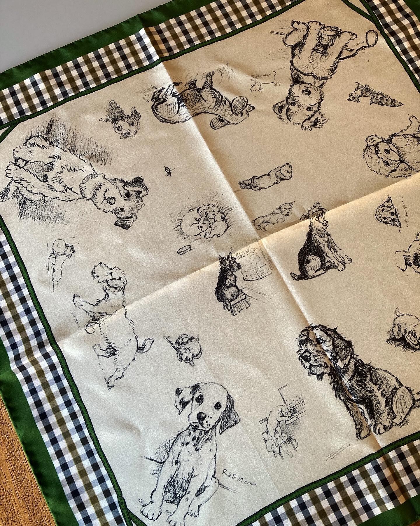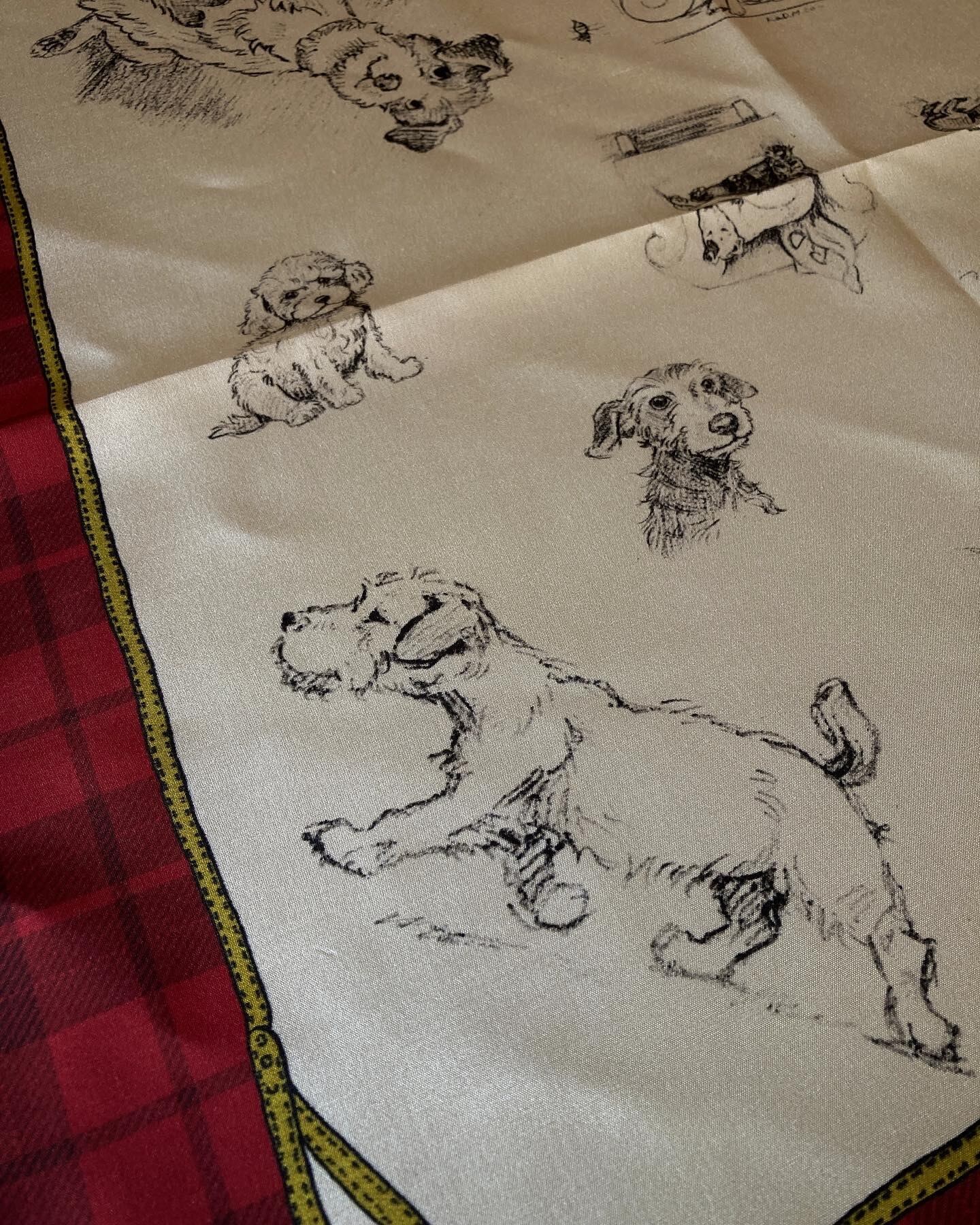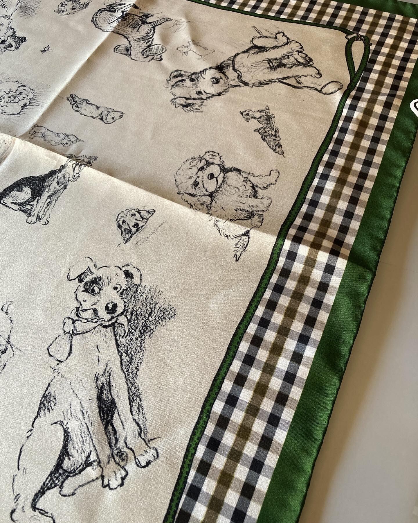 鉛筆でデッサンでされた雰囲気の犬たちが、これ見よがしに愛くるしい表情でこれはもう堪りません。また、レッド × ブラックのタータンチェック、グリーンベースにギンガムチェックとイギリスの雰囲気も抜かりなくと言った具合となっております。
