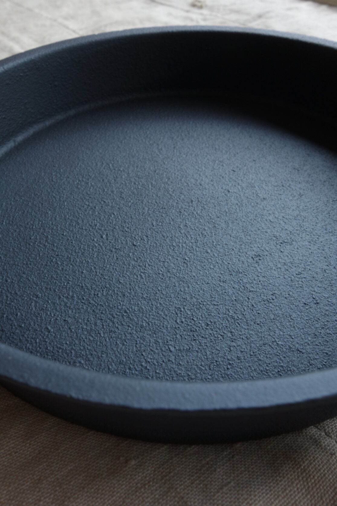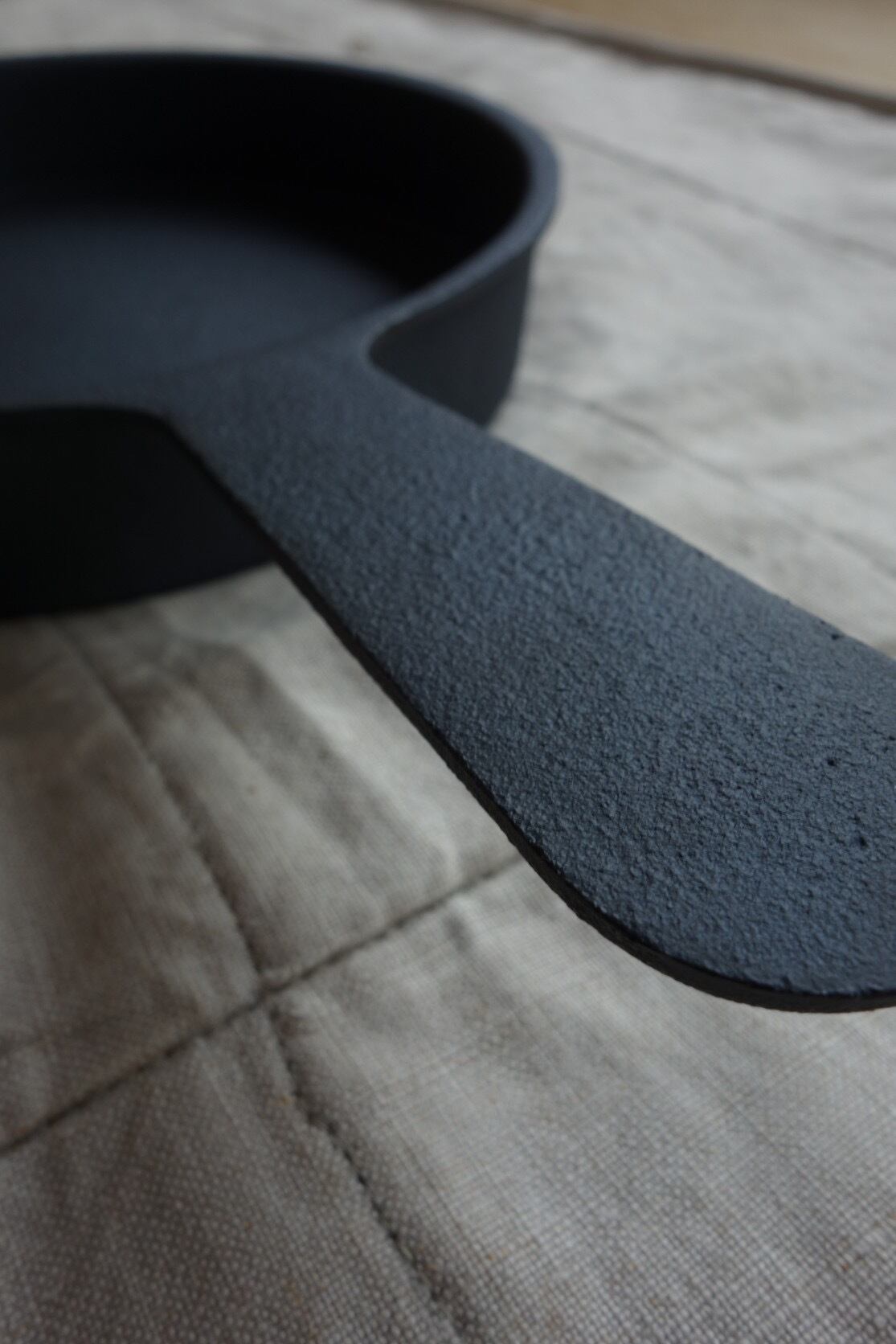 通常の鋳物製品に見られる滑らかな光沢感は皆無で、マットでざらついた表情が特徴です。