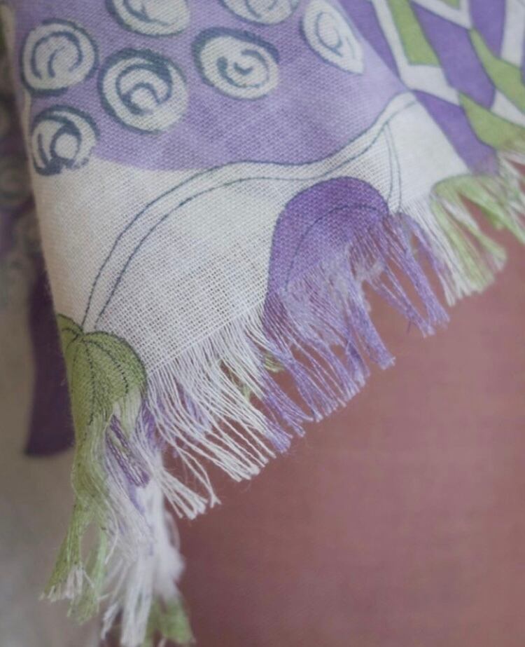 R&D.M.Co- OLDMAN’S TAILOR BOTANICAL MOTIF GAUZE SHAWL Lavender