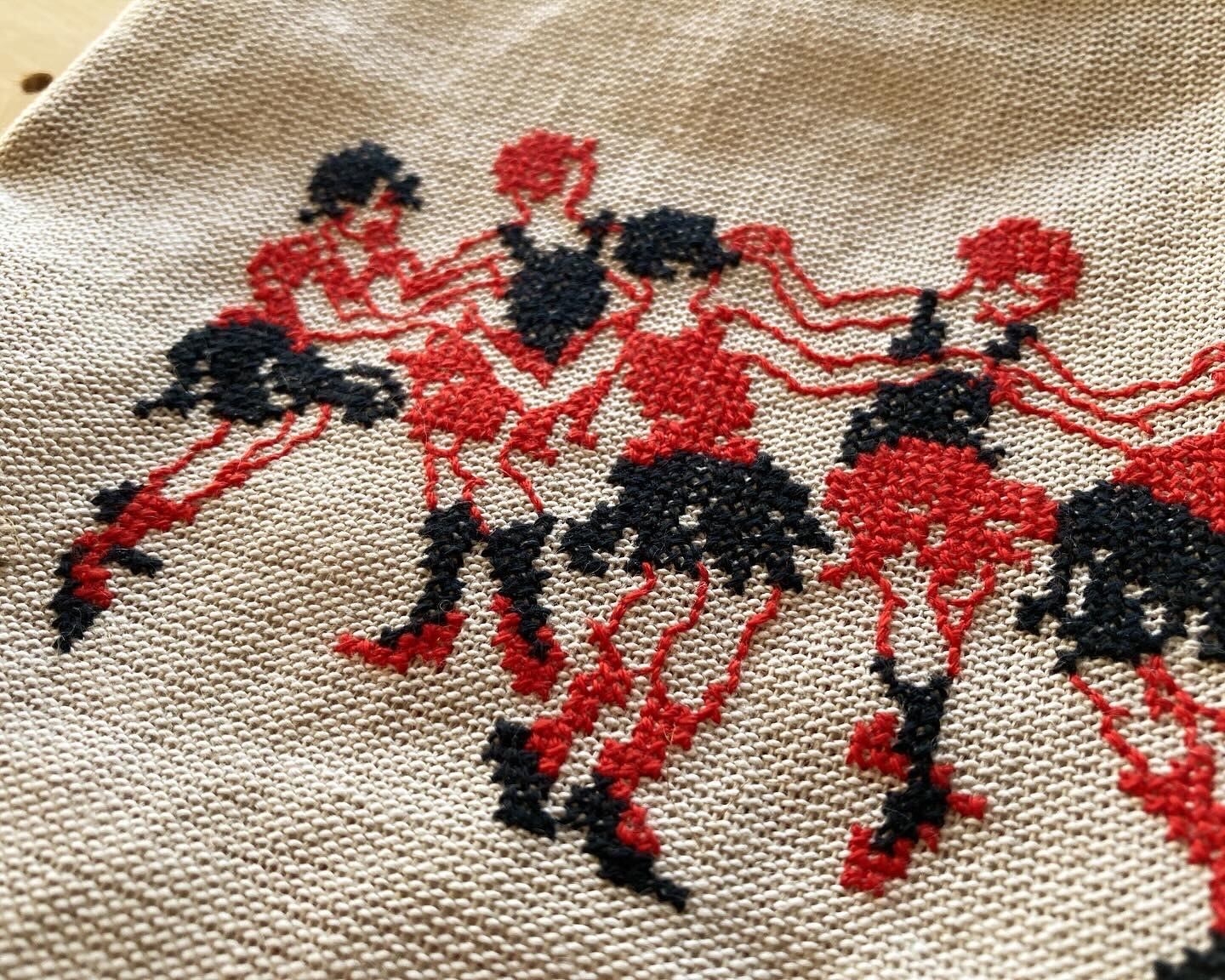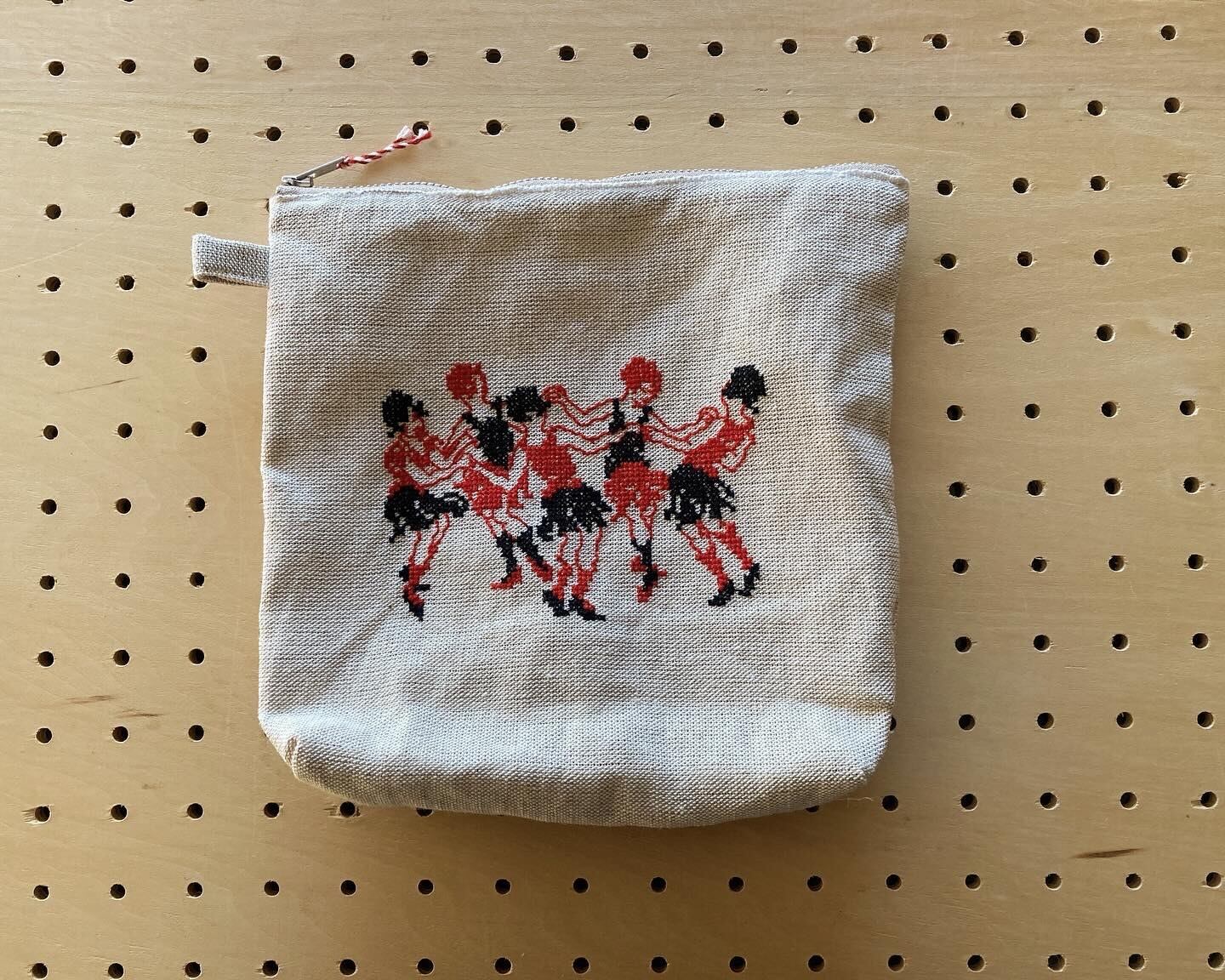 フランスの踊り子の刺繍が美しく、ファスナーを開けた際の赤色のラインが実に印象的。