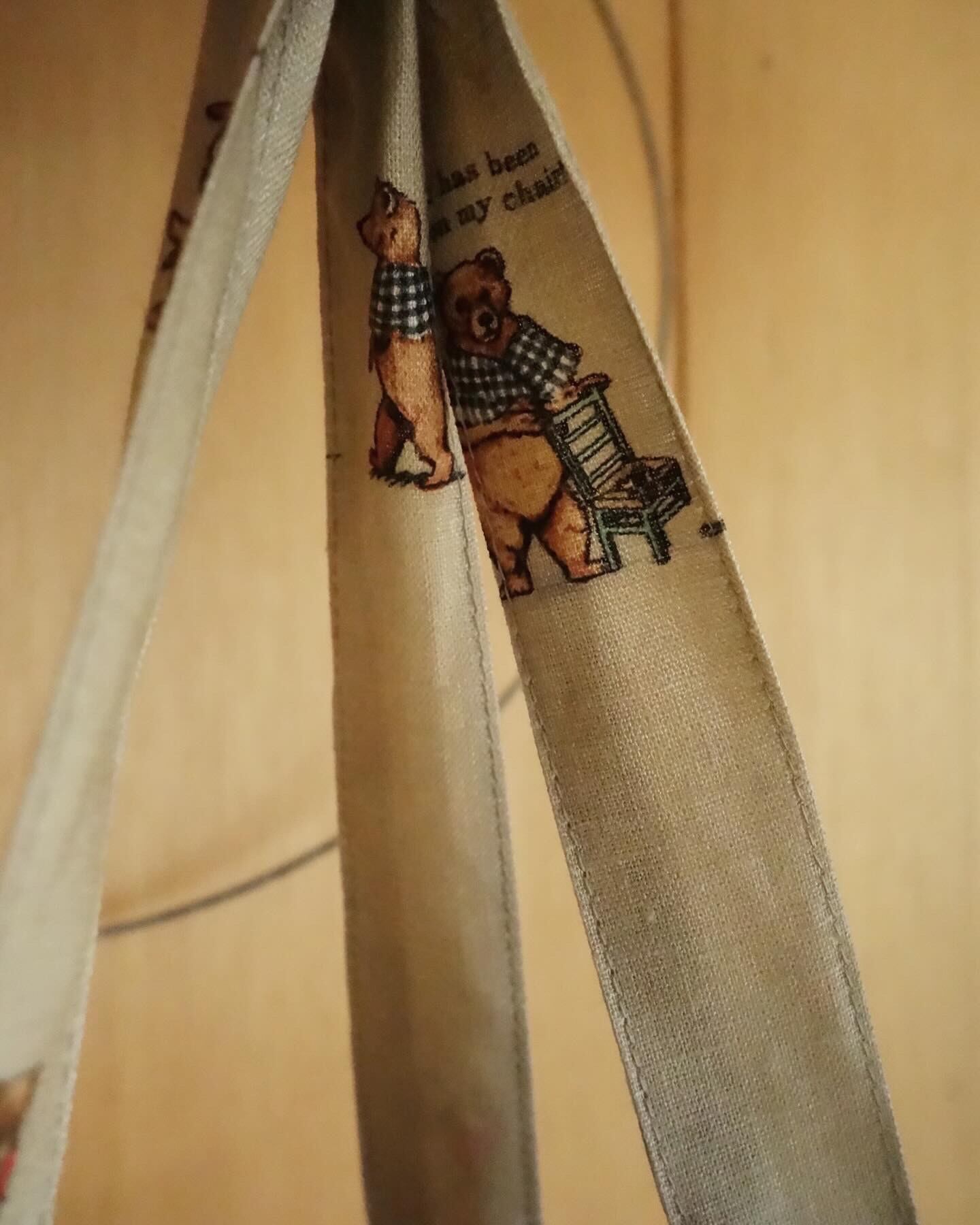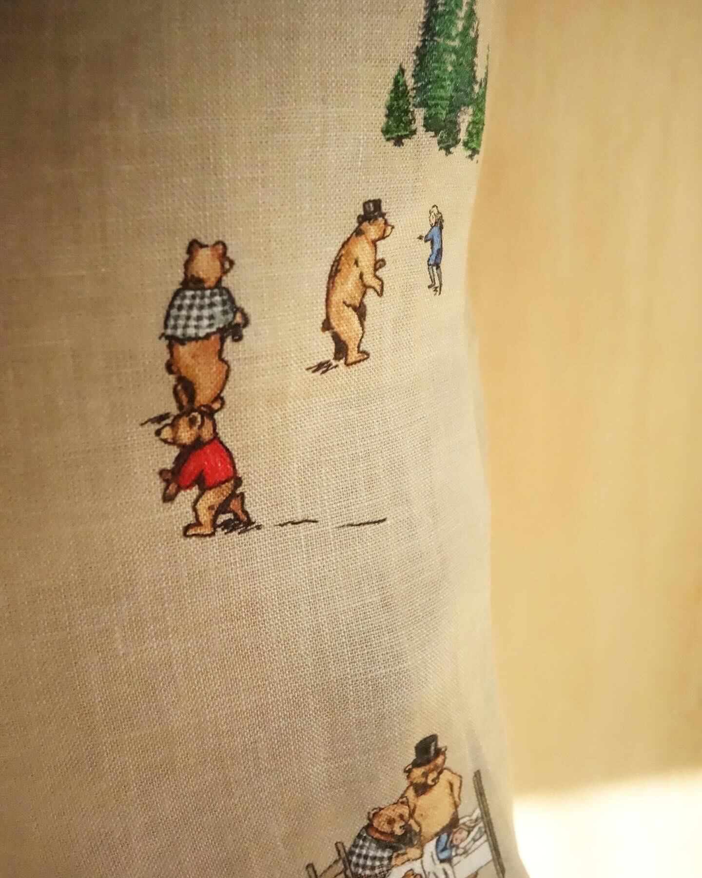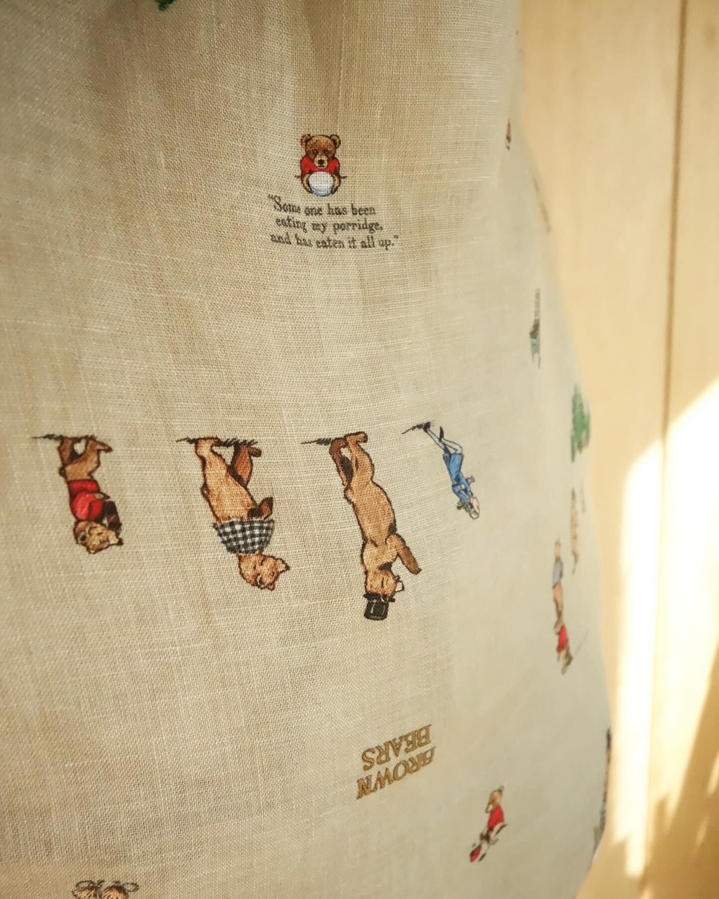 柔らかな風合いのベージュカラーのリネン素材に、これでもかと言って良いくらいに愛くるしいイラストが散りばめられております。